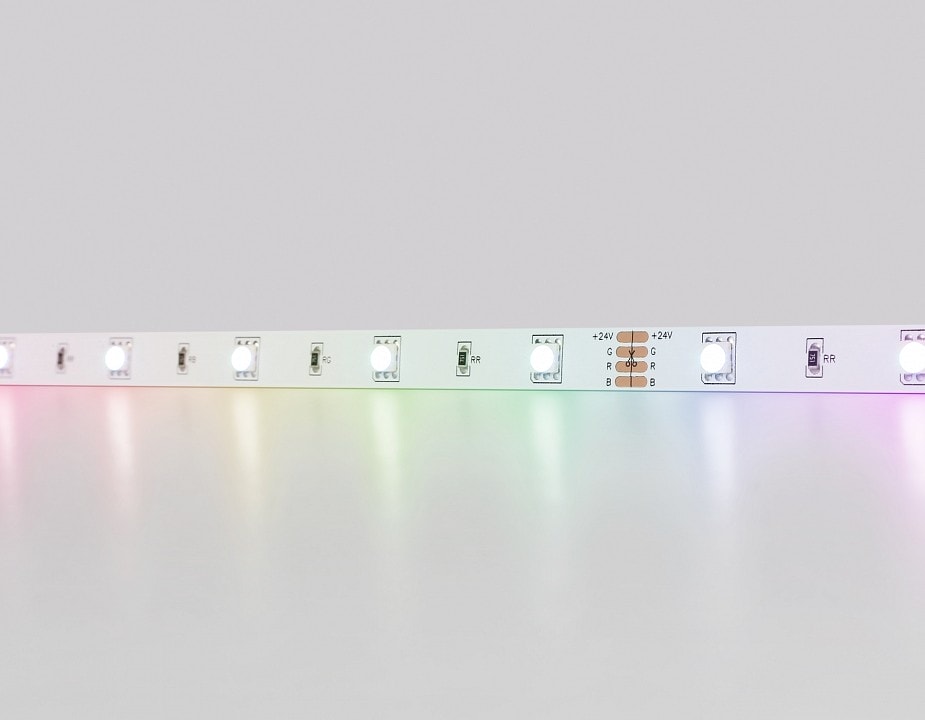 Лента работает от сети с напряжением 220 В и требует блок питания на 24 В, что делает её удобной в использовании и установке. Степень пылевлагозащиты IP-20 гарантирует, что лента подходит для использования в помещениях, защищая её от пыли и влаги.