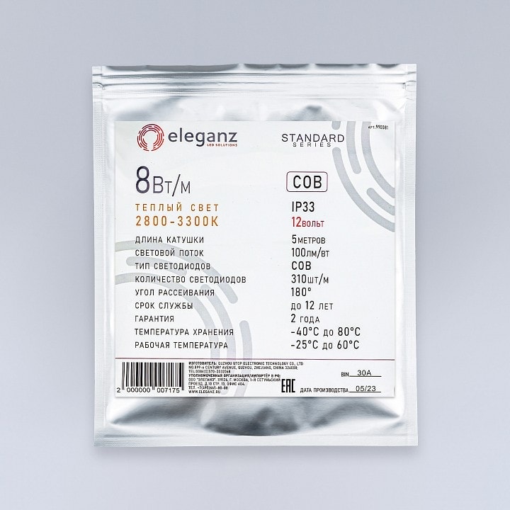 Произведенная в России, светодиодная лента Eleganz 990081 сочетает в себе высокое качество и доступную цену. Она идеально подходит для создания декоративного освещения, подсветки мебели, а также для оформления различных мероприятий. Не упустите возможность преобразить ваше пространство с помощью этой стильной и функциональной светодиодной ленты!
