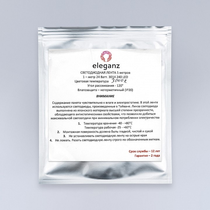 Произведенная в России, светодиодная лента Eleganz EL-SS-24WW сочетает в себе надежность и высокое качество. Она идеально подходит для создания атмосферного освещения в жилых и коммерческих помещениях, а также для декоративного освещения мебели и архитектурных элементов.