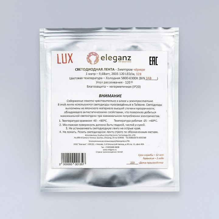 Светодиодная лента Eleganz LUX 9008 - это не только практичное, но и стильное решение для освещения. Используйте её для подсветки мебели, создания акцентов в интерьере или для оформления праздничных мероприятий. Закажите сейчас и преобразите ваше пространство с помощью современных технологий освещения!