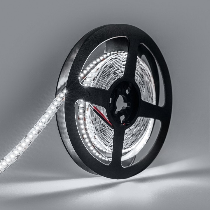 Лента работает на напряжении 24 В и обладает общей мощностью 120 Вт, что делает её мощным источником света. В комплекте вы получите 1200 светодиодов, которые обеспечивают яркое и равномерное освещение. Для работы ленты необходим блок питания на 24 В, который не входит в комплект.