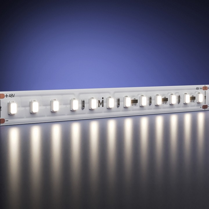 Светодиодная лента работает на напряжении 220 В и требует блок питания на 48 В, что обеспечивает её стабильную работу и долговечность. Благодаря степени пылевлагозащиты IP 20, лента подходит для использования в помещениях, где нет прямого контакта с влагой.