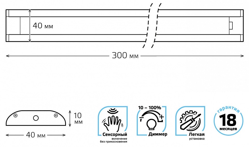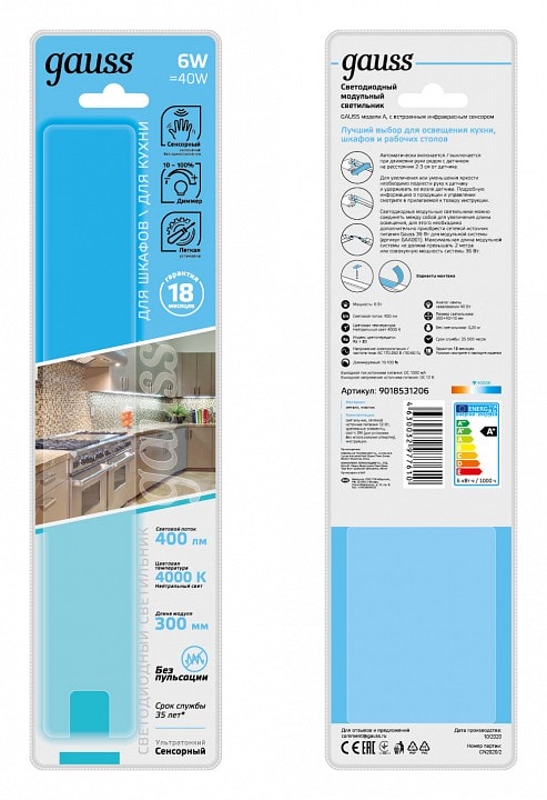 Светильник Gauss Ir A 9018531206 работает в диапазоне напряжения 170-260 В и имеет степень пылевлагозащиты IP 20, что делает его идеальным для использования в помещениях с низкой влажностью, таких как кухня. В комплекте предусмотрен сенсорный диммер и сенсорный выключатель, что позволяет легко регулировать яркость освещения в зависимости от ваших потребностей.