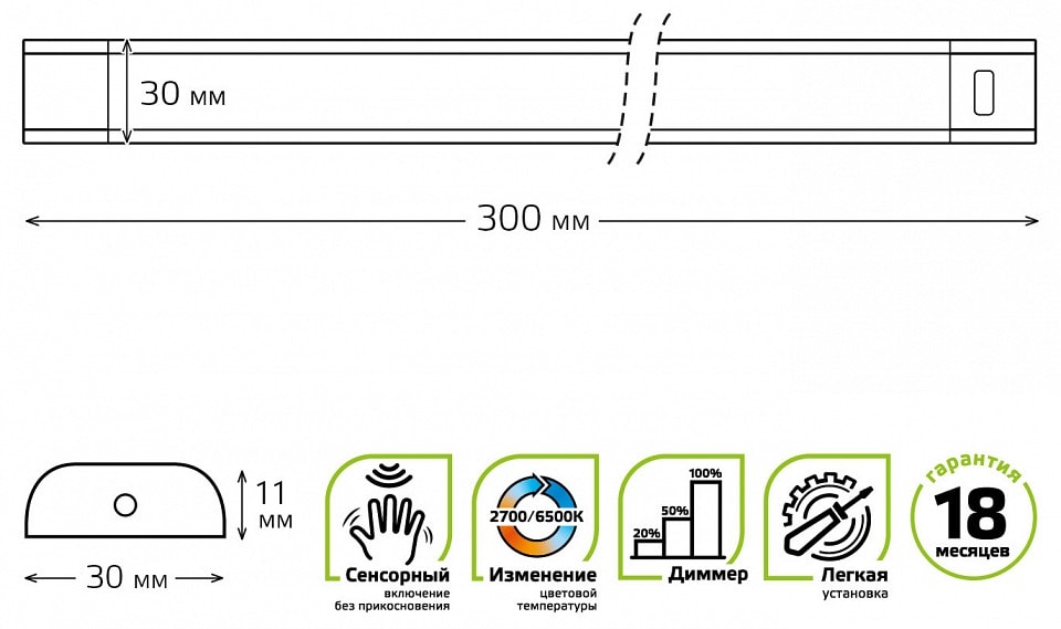 Светильник Gauss Ir B имеет глубину всего 11 мм и выступает на 11 мм, что позволяет ему гармонично вписаться в пространство. Он оснащен одним плафоном, который обеспечивает равномерное освещение площади до 3 м². В комплект входит светодиодная лампа мощностью 6 Вт, что гарантирует экономичное потребление электроэнергии и долгий срок службы.