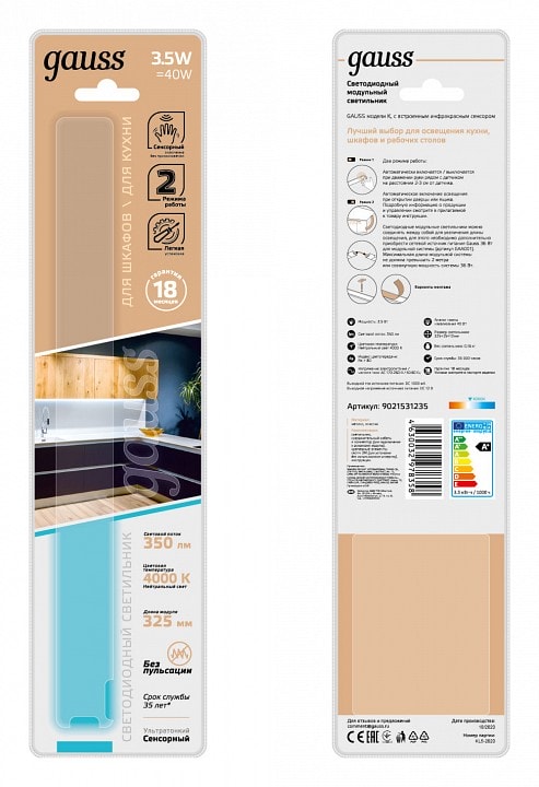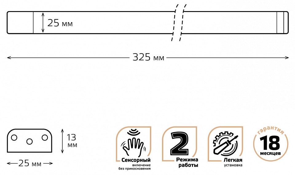 Светильник имеет компактные размеры: глубина и выступ составляют всего 13 мм, что позволяет установить его даже в ограниченном пространстве. Он оснащен одной светодиодной лампой мощностью 4 Вт, что обеспечивает достаточную яркость для освещения площади до 2 м². Благодаря сенсорному выключателю, управление светом становится простым и удобным.