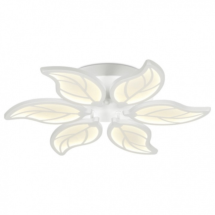 Светильник имеет высоту всего 80 мм и состоит из 6 плафонов, которые направлены вниз, обеспечивая равномерное и яркое освещение. Каждый плафон выполнен в форме цветка-бутона, что добавляет оригинальности и изящества в дизайн. В комплект входят светодиодные лампы мощностью до 15 Вт, что позволяет достичь общей мощности в 90 Вт и освещать площадь до 45 м².