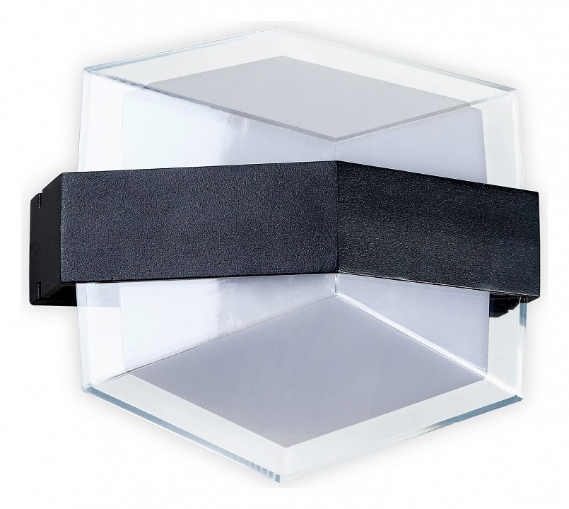 Светильник оснащен одним многоугольным выпуклым плафоном, который обеспечивает равномерное и мягкое освещение. В комплект входит светодиодная лампа мощностью до 10 Вт, что позволяет эффективно освещать площадь до 5 м². Направление света направлено вперед, что делает его идеальным для акцентного освещения.