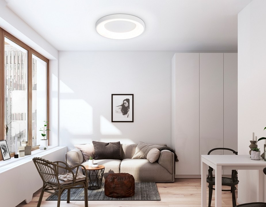 Светильник оснащен одним светодиодным плафоном, который обеспечивает яркое и равномерное освещение площадью до 24 м². Максимальная мощность лампы составляет 48 Вт, что позволяет создать комфортную атмосферу в вашем помещении. Направление света направлено вниз, что делает его идеальным для установки на потолке.