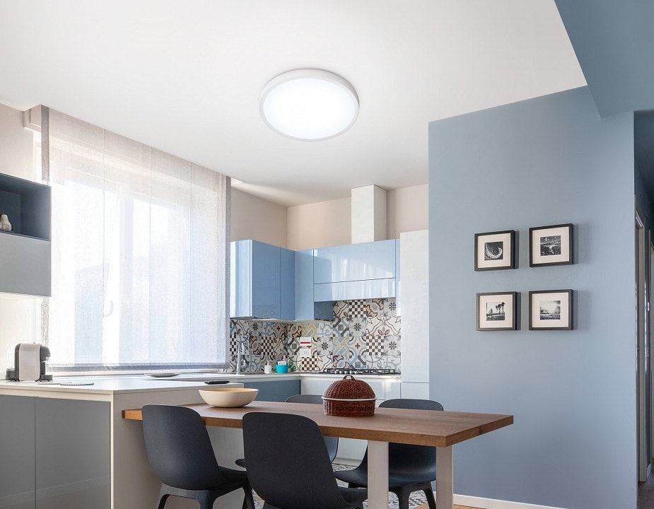 Светильник выполнен в стиле модерн и имеет плоскую круглую форму плафона, что позволяет ему гармонично вписаться в любой интерьер. Благодаря степени пылевлагозащиты IP-54, он надежно защищен от влаги и пыли, что делает его идеальным для использования в помещениях с повышенной влажностью.