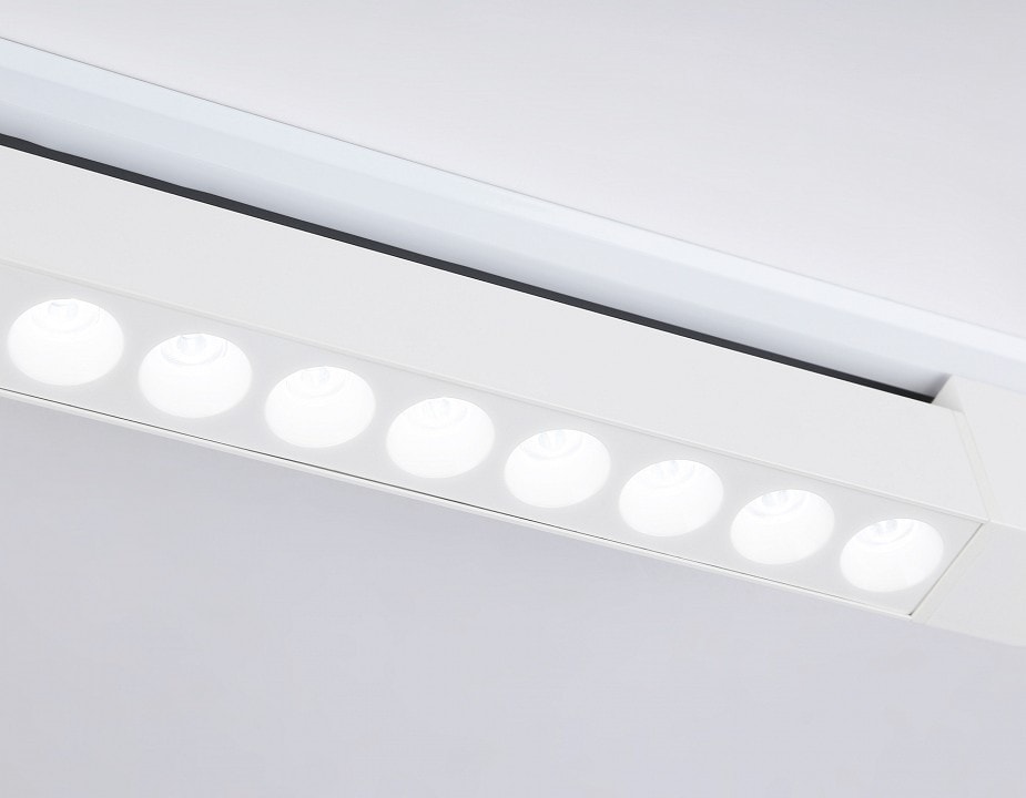 Светильник работает от сети с напряжением 220 В и требует однофазный трек для установки. Его степень пылевлагозащиты IP-20 гарантирует надежную работу в помещениях с нормальными условиями эксплуатации. Стиль техно и прямоугольная форма плафонов придают светильнику современный и лаконичный вид, который легко впишется в любой интерьер.