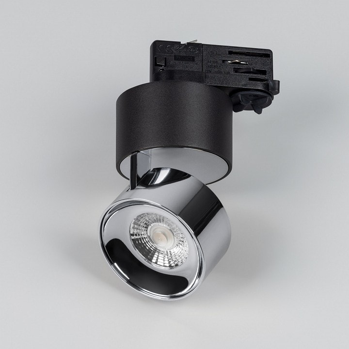Светильник работает от сети с напряжением 220 В и требует трек трехфазный для установки. Направление плафонов можно регулировать, что позволяет направить свет в нужную сторону. Степень пылевлагозащиты IP20 гарантирует надежную работу в помещениях с низким уровнем влажности.