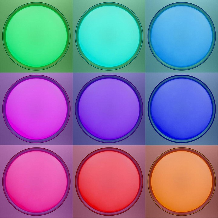 Светильник оснащен светодиодной лампой мощностью до 68 Вт, что обеспечивает отличную яркость при низком потреблении энергии. Площадь освещения составляет до 34 м², что делает его идеальным для больших помещений. Кроме того, наличие пульта ДУ позволяет легко управлять яркостью и включением/выключением света, что добавляет удобства в использовании.
