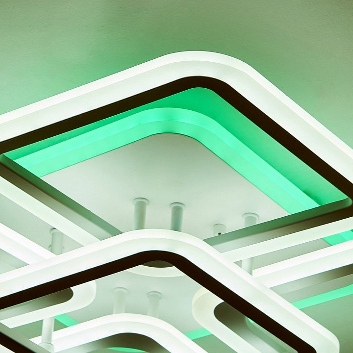 Светильник оснащен пятью светодиодными плафонами, которые обеспечивают мощность до 75 Вт и способны осветить площадь до 37.5 м². Каждый плафон имеет квадратную призматическую форму, что придает изделию уникальный и современный вид. Направление света вниз создает уютную атмосферу, идеально подходящую для вечерних встреч с друзьями или семейных ужинов.