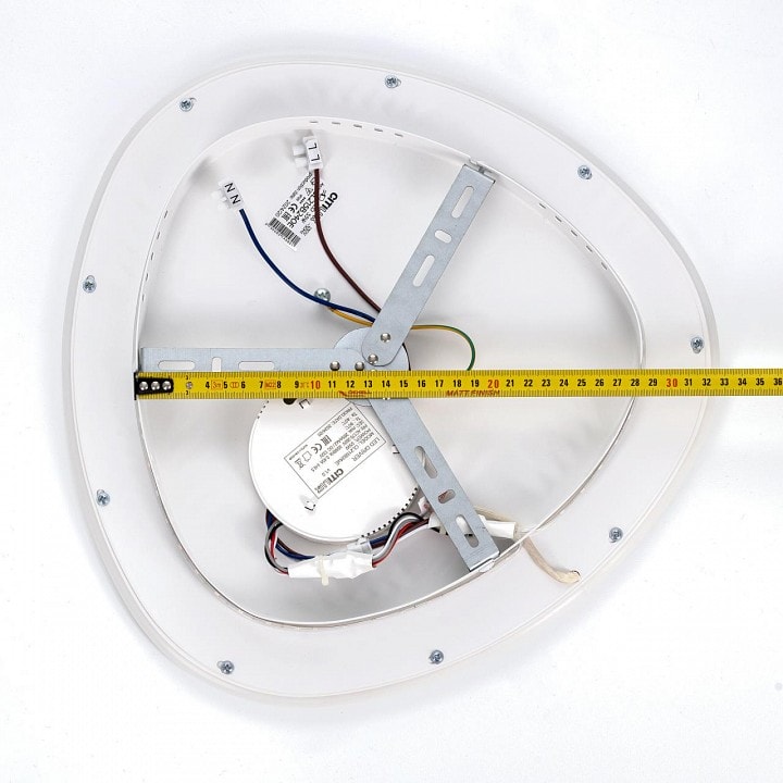 Светильник оснащен светодиодной лампой мощностью до 55 Вт, что обеспечивает яркое и экономичное освещение. В комплекте идет пульт ДУ, который позволяет легко управлять яркостью и включением/выключением света. Для работы пульта вам понадобятся две батарейки AAA, которые не входят в комплект.