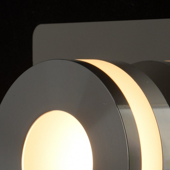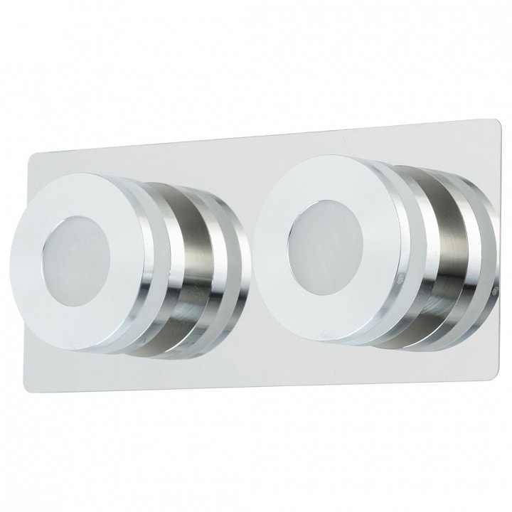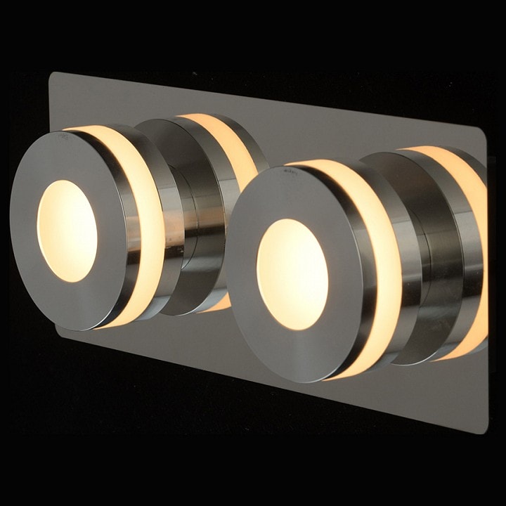 Светильник имеет два плафона с направлением света вперед, что обеспечивает равномерное освещение площади до 5 м². Благодаря использованию светодиодных ламп мощностью 5 Вт каждая, общая мощность составляет 10 Вт, что позволяет значительно экономить электроэнергию. В комплекте идут лампы, что делает установку еще более удобной.
