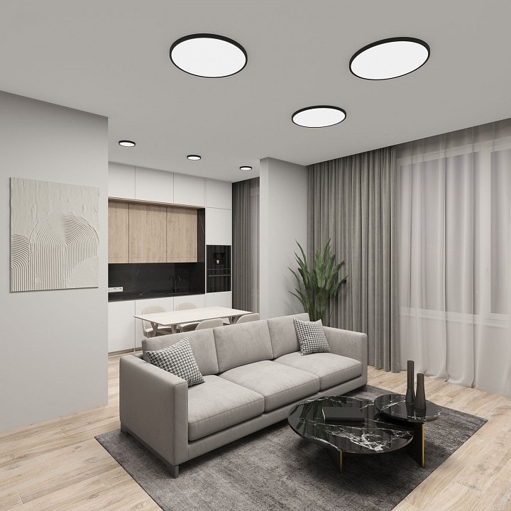 С диаметром 600 мм и высотой всего 25 мм, светильник Denkirs THIN DK6524-BK не только эффективно освещает пространство, но и занимает минимальное место на потолке. Он оснащен одной светодиодной лампой мощностью до 50 Вт, что обеспечивает яркое и равномерное освещение на площади до 25 м². Направление света вниз создает мягкий и комфортный свет, идеально подходящий для отдыха и общения.