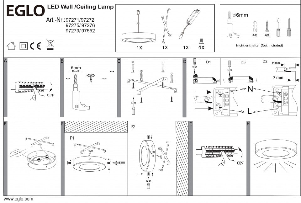 Светильник работает от сети с напряжением 220 В и имеет максимальную мощность лампы 27 Вт. В комплекте уже предусмотрена светодиодная лампа, что делает установку максимально простой и удобной. Благодаря степени пылевлагозащиты IP20, Eglo Fueva 1 подходит для использования в помещениях с нормальными условиями.