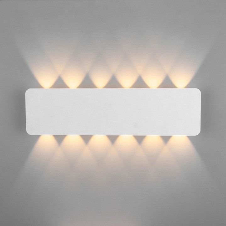 Светильник выполнен в форме прямоугольной призмы и оснащен одной светодиодной лампой мощностью до 12 Вт. Благодаря этому, он обеспечивает яркое и равномерное освещение площади до 6 м². Направление плафонов направлено вперед, что позволяет создать уютную атмосферу в вашем помещении.