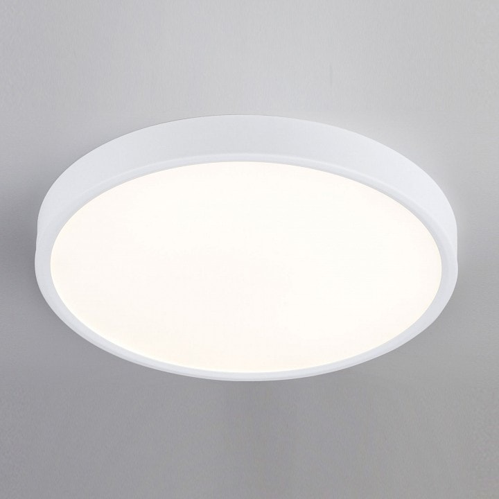 С диаметром 265 мм и глубиной 28 мм, светильник имеет компактные размеры, что позволяет ему гармонично сочетаться с различными элементами декора. Артикул: ELK_a043016. Он оснащен одним плафоном, который направляет свет вниз и вперед, обеспечивая равномерное освещение площади до 12 м².