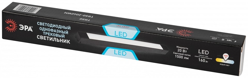 Светильник Эра TR50 имеет высоту всего 40 мм и оснащен одним светодиодным плафоном, который обеспечивает максимальную мощность в 20 Вт. Благодаря этому, он способен освещать площадь до 10 м², что делает его идеальным выбором для небольших офисных помещений. Направление плафонов можно регулировать, что позволяет направить свет именно туда, где он необходим.