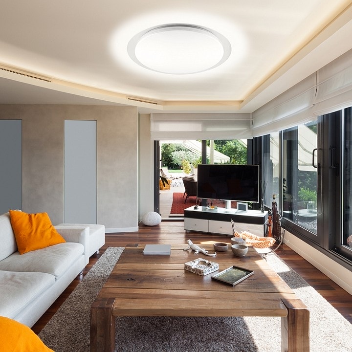 С диаметром 770 мм, светильник Feron 29786 обеспечивает равномерное освещение площади до 50 м², что делает его отличным выбором для просторных помещений. Он оснащен одной светодиодной лампой мощностью до 100 Вт, что гарантирует яркий и экономичный свет.