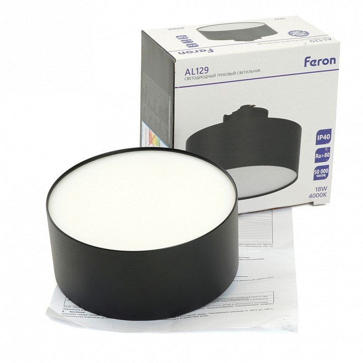 Светильник Feron AL129 51160 работает от напряжения 175 В и имеет степень пылевлагозащиты IP 40, что делает его надежным выбором для офисных помещений. Для установки потребуется однофазный трек, что обеспечивает легкость монтажа и возможность изменения направления света.
