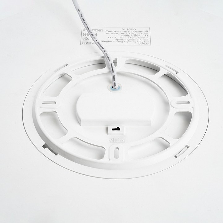 С диаметром 400 мм и высотой всего 42 мм, светильник легко впишется в любой интерьер, не занимая много места. Он оснащен одним плафоном, который направлен вниз, обеспечивая равномерное и мягкое освещение. Максимальная мощность лампы составляет 48 Вт, что позволяет осветить площадь до 24 м².