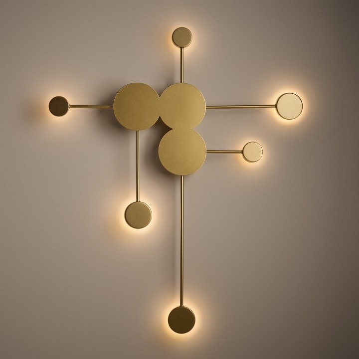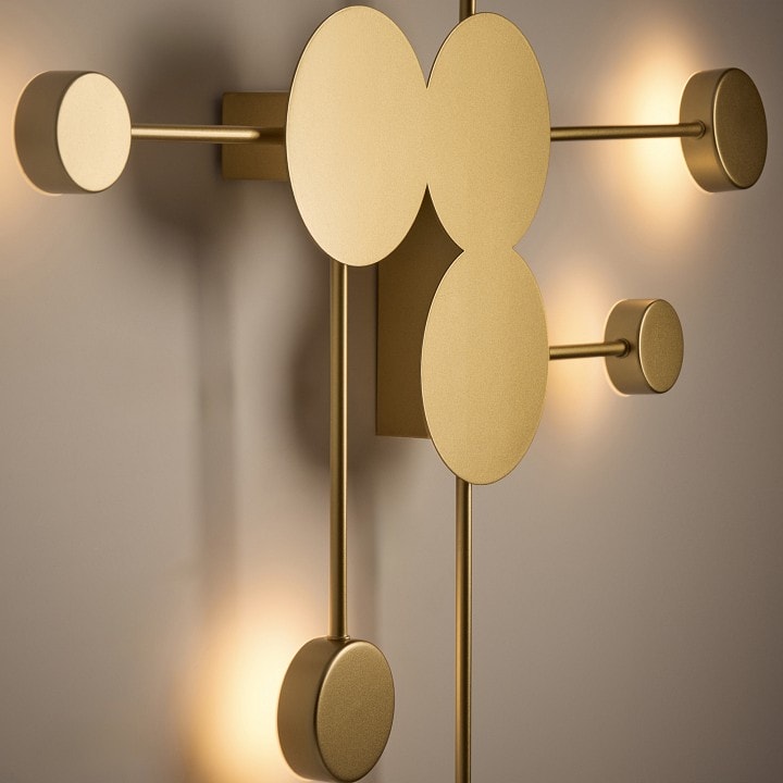 Светильник Freya Wonder имеет компактные размеры: глубина и выступ составляют 125 мм, что позволяет легко разместить его на стене, не занимая много пространства. Плафоны имеют круглую плоскую форму и направлены в стороны, что создает мягкое и уютное освещение.