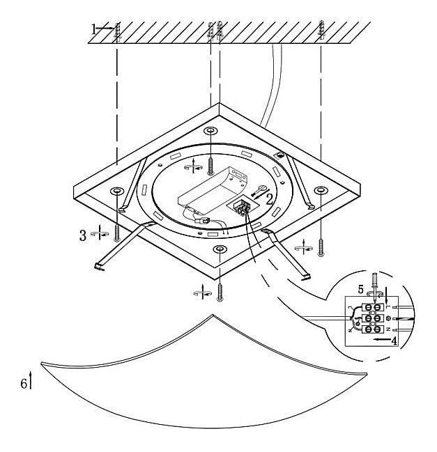 Светильник работает от сети с напряжением 220 В и имеет степень пылевлагозащиты IP 20, что делает его безопасным для использования в помещениях. Площадь освещения составляет до 6 м², что позволяет эффективно осветить небольшие пространства.