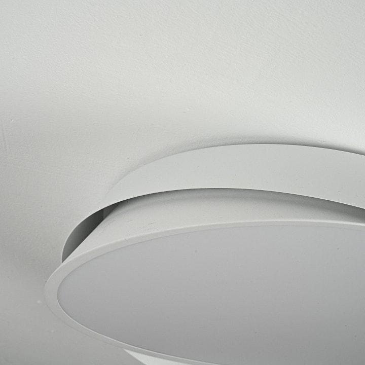 Светильник имеет диаметр 400 мм и высоту 110 мм, что делает его компактным и удобным для установки на потолке. Он оснащен одним плафоном, который направляет свет вниз, обеспечивая равномерное освещение площади до 20 м². В комплект входят светодиодные лампы мощностью до 10 Вт, что позволяет экономить электроэнергию и продлевает срок службы светильника.