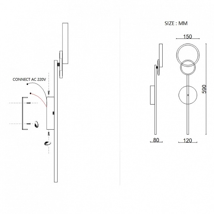 Светильник имеет глубину и выступ 80 мм, а высота составляет 590 мм, что позволяет ему гармонично вписаться в любой интерьер. Он оснащен одним плафоном, который направляет свет в стороны, создавая уютную атмосферу. Максимальная мощность лампы составляет 12 Вт, а в комплекте идет светодиодная лампа, что обеспечивает экономичное и долговечное освещение.