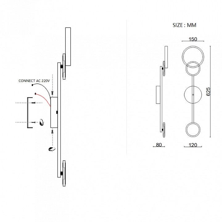 Светильник выполнен в элегантном стиле модерн и имеет компактные размеры: высота 625 мм и глубина 80 мм. Он оснащен двумя светодиодными плафонами, которые направлены в стороны, что позволяет равномерно освещать площадь до 8 м². Максимальная мощность лампы составляет 8 Вт, а общая мощность светильника — 16 Вт, что делает его энергоэффективным решением для вашего дома.