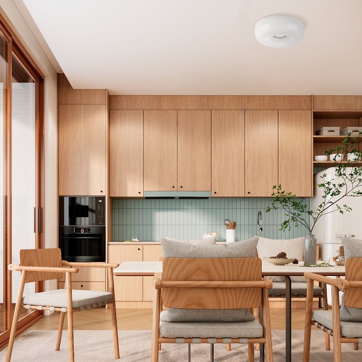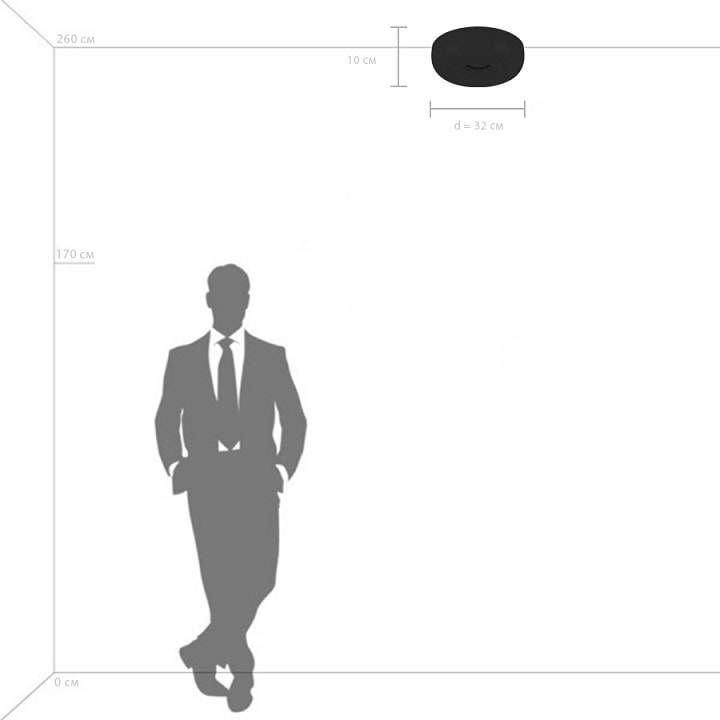 С диаметром 320 мм и высотой 100 мм, светильник обладает компактными размерами, что позволяет разместить его даже в небольших помещениях. Он оснащен одним светодиодным плафоном, который направлен вниз, обеспечивая равномерное и яркое освещение площадью до 14 м². Максимальная мощность лампы составляет 28 Вт, что делает его энергоэффективным решением для вашего дома.