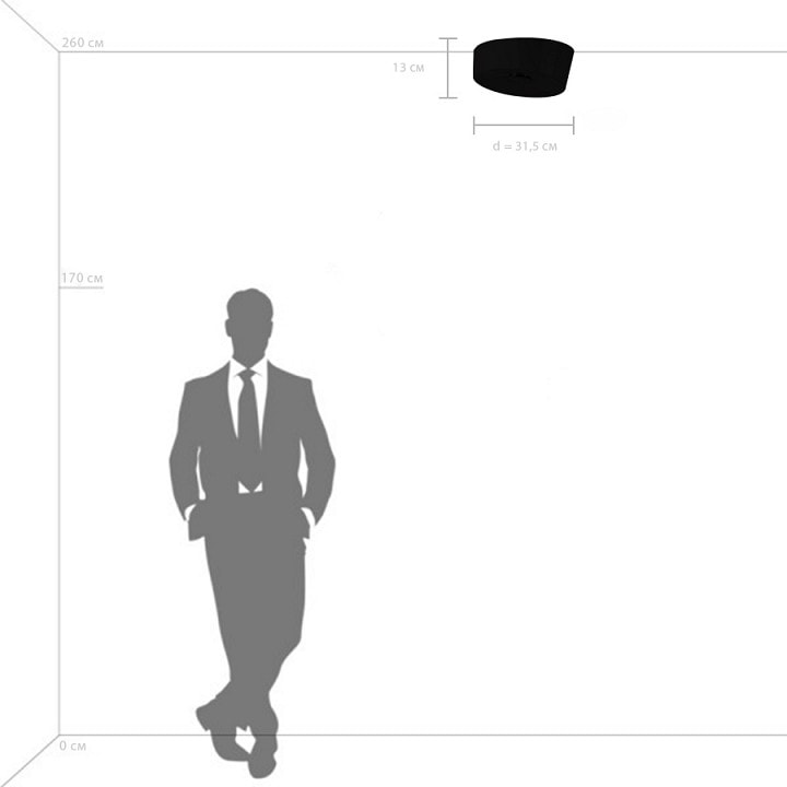С диаметром 315 мм и высотой 130 мм, светильник обладает компактными размерами, что позволяет ему гармонично смотреться в помещениях различной площади. Он предназначен для установки на потолок и обеспечивает освещение площадью до 14 м², что делает его идеальным для гостиных, холлов и других жилых пространств.