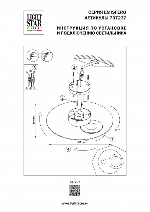 Светильник Lightstar Emisfero 737237 имеет степень пылевлагозащиты IP20, что позволяет использовать его в помещениях с нормальными условиями. Его масса составляет всего 1.7 кг, что облегчает установку и монтаж. Размер упаковки составляет 430x430x200 мм, что делает его удобным для транспортировки.