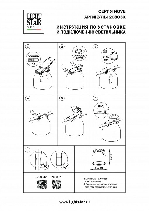 Светильник Lightstar NOVE 208032 имеет степень пылевлагозащиты IP20, что позволяет использовать его в помещениях с низким уровнем влажности. Он идеально подходит для освещения площадей до 6 м², что делает его отличным выбором для небольших гостиных или других жилых пространств.