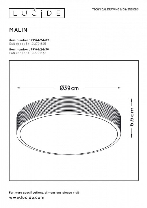 Lucide Malin 79184/24/02 — это не только функциональный, но и стильный элемент декора. Его современный круглый плоский плафон добавляет изысканности, а светодиодная лампа в комплекте обеспечивает долговечность и экономию энергии.