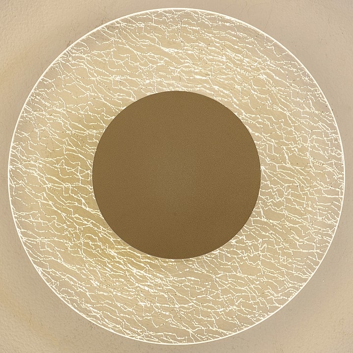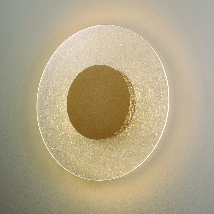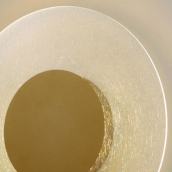 Светильник имеет плоскую круглую форму плафона, который направлен вперед, создавая мягкое и комфортное освещение. Его масса составляет всего 2.52 кг, что облегчает установку на стену. Размер упаковки составляет 560x560x85 мм, что делает его удобным для транспортировки.