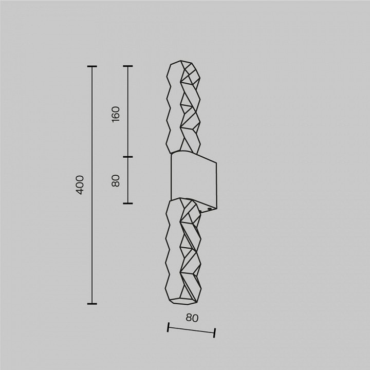 Светильник имеет глубину и выступ 80 мм, что позволяет ему гармонично вписаться в любое пространство. Он предназначен для установки на стену и идеально подходит для освещения гостиной. Благодаря одному плафону с многоугольной призматической формой, светильник создает мягкое и равномерное освещение, которое украсит ваш дом.