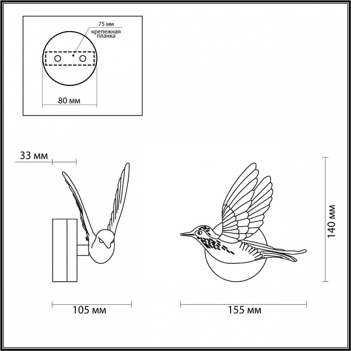 Светильник оснащен одним светодиодным плафоном мощностью 3 Вт, который обеспечивает освещение площадью до 1.5 м². Направление плафонов в стороны позволяет равномерно распределять свет, создавая мягкое и комфортное освещение. Накладной светильник работает от сети с напряжением 220 В и имеет степень пылевлагозащиты IP20, что делает его безопасным для использования в помещениях.