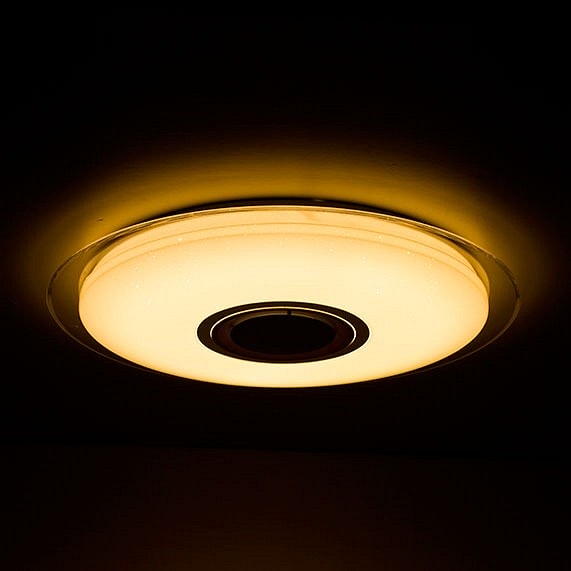 Светильник оснащен пультом ДУ, что позволяет легко управлять яркостью и включением/выключением света. Направление плафона направлено вниз, что обеспечивает максимальную эффективность освещения. Степень пылевлагозащиты IP44 гарантирует надежную работу светильника в различных условиях.
