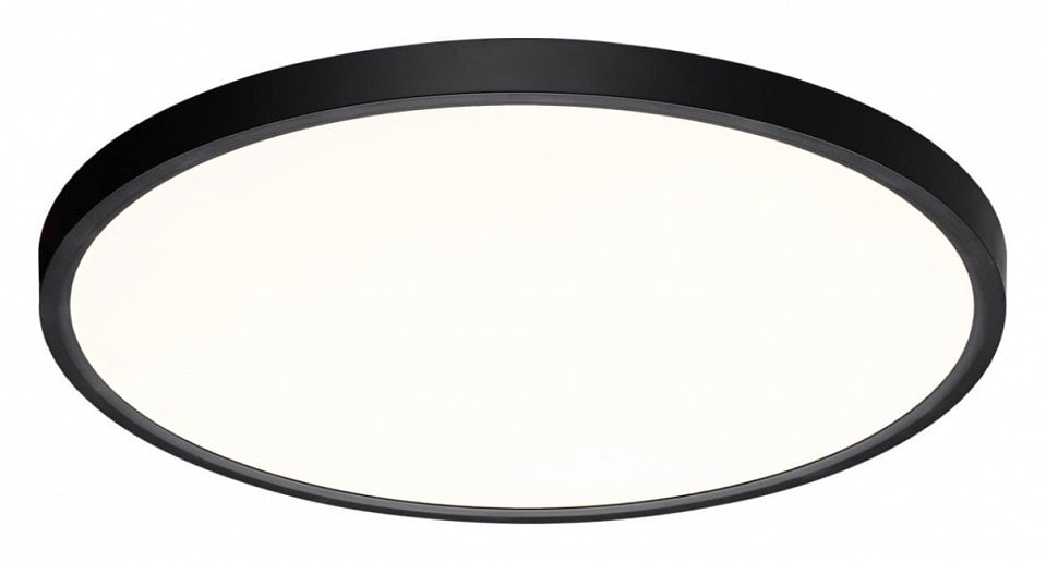 Светильник выполнен в элегантном черном цвете и имеет диаметр 495 мм, что позволяет ему гармонично вписаться в различные стили оформления. Высота светильника составляет всего 25 мм, что делает его идеальным для помещений с низкими потолками. Благодаря одному плафону, светильник обеспечивает равномерное освещение площади до 20 м².