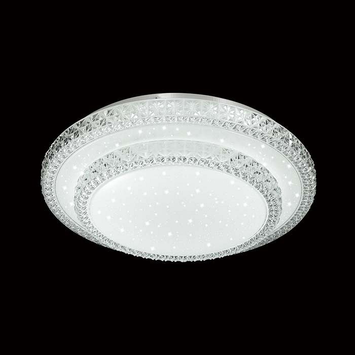Светильник оснащен одной светодиодной лампой мощностью до 48 Вт, что обеспечивает яркое и экономичное освещение. В комплекте идет пульт ДУ, позволяющий удобно управлять яркостью и включением/выключением света. Напряжение питания составляет 220 В, что делает его совместимым с большинством домашних электрических систем.