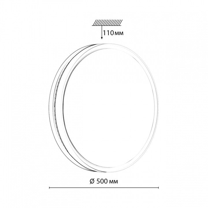 Светильник выполнен в элегантном синем цвете и имеет диаметр 500 мм, что позволяет ему гармонично вписаться в любое пространство. Высота светильника составляет 110 мм, а его масса — 1.895 кг, что делает его легким и удобным в установке.