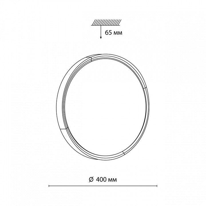Светильник имеет диаметр 400 мм и глубину 65 мм, что делает его компактным и удобным для установки как на потолке, так и на стене. Благодаря своему современному стилю, он отлично подойдет для различных интерьеров, от минимализма до более классических решений.