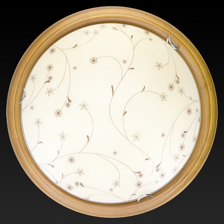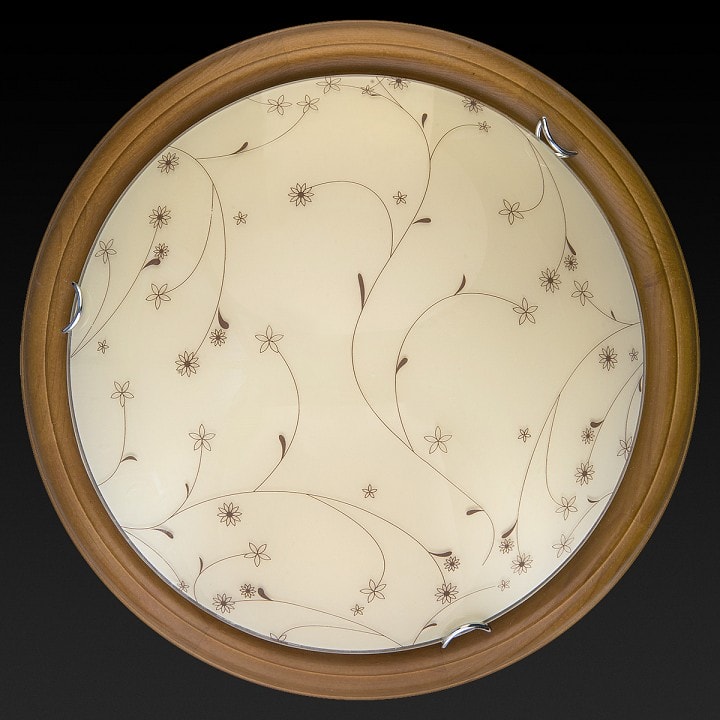 Светильник выполнен в круглом дизайне с выпуклыми плафонами, что придаёт ему элегантный и современный вид. Диаметр светильника составляет 360 мм, что позволяет ему эффективно освещать площадь до 9 м², идеально подходя для гостиных и других жилых помещений.