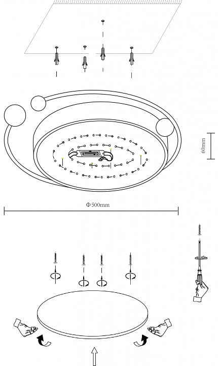 Светильник оснащен одним светодиодным плафоном, который обеспечивает мощность до 36 Вт и освещает площадь до 18 м². Благодаря направлению света вниз, он создает уютную атмосферу, идеально подходящую для вечерних встреч с друзьями или семейных ужинов. Пульт ДУ в комплекте позволяет легко управлять яркостью и включением света, что добавляет удобства в использовании.