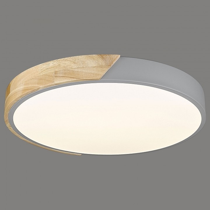 С диаметром 400 мм и высотой всего 50 мм, светильник обладает компактными размерами, что позволяет ему гармонично сочетаться с различными элементами декора. Он оснащен одним плафоном, который направлен вниз, обеспечивая равномерное и мягкое освещение. Максимальная мощность лампы составляет 24 Вт, что делает его эффективным источником света для помещений площадью до 12 м².