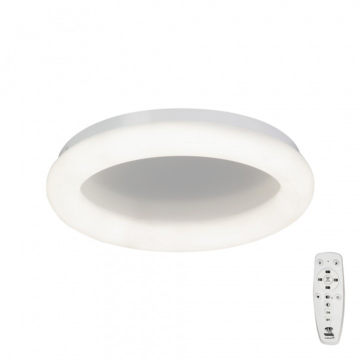 Светильник оснащен одной светодиодной лампой мощностью до 52 Вт, что обеспечивает яркое и экономичное освещение. Площадь освещения составляет до 26 м², что делает его отличным выбором для просторных комнат. Благодаря пульту ДУ, вы сможете легко управлять яркостью и создавать уютную атмосферу в любое время.