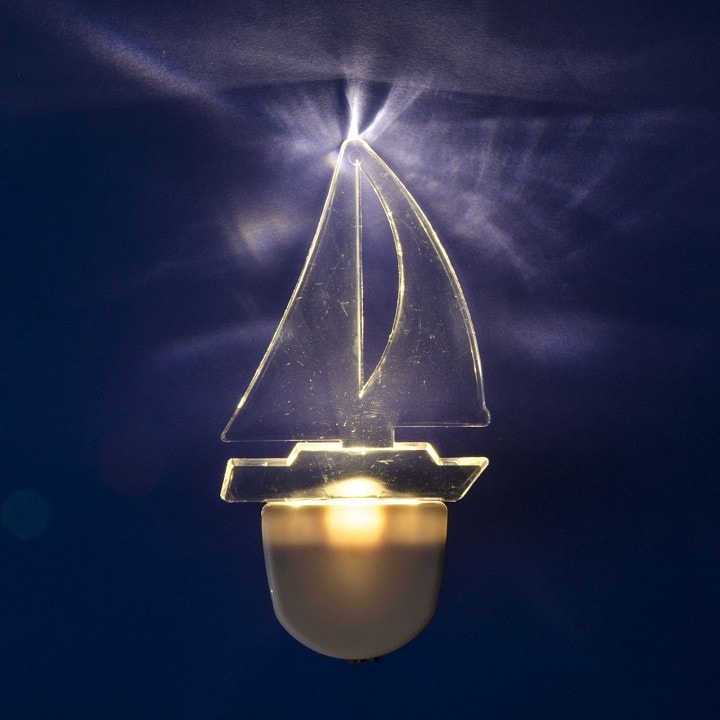 Светодиодная лампа, входящая в комплект, работает от стандартного напряжения 220 В и обладает высокой энергоэффективностью. Площадь освещения составляет 0.1 м², что идеально подходит для использования в детской комнате. Ночник направляет свет вперед, что позволяет избежать резкого света и создает комфортные условия для сна.